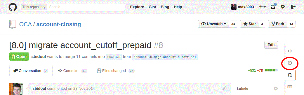 - Report Runbot errors by creating a new issue on the same project as the pull request: