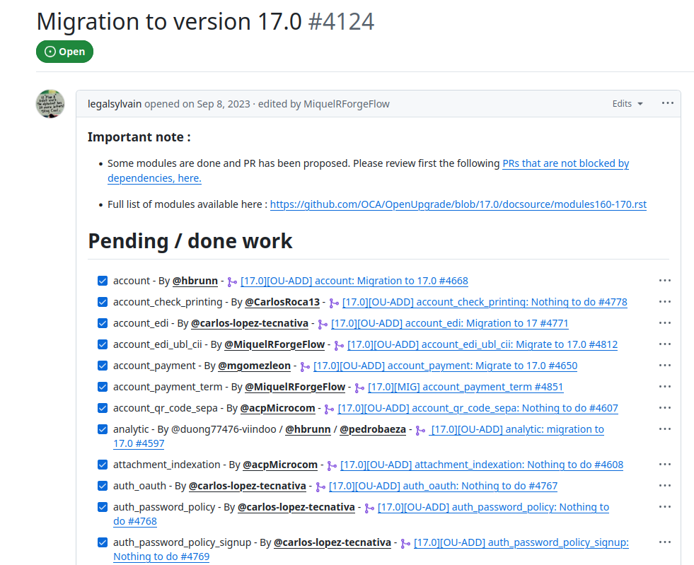 Thanks mainly to Holger Brun, Miquel Raich, Pedro Baeza, Sylvain LeGal, the OpenUpgrade scripts for version 17 are almost done.