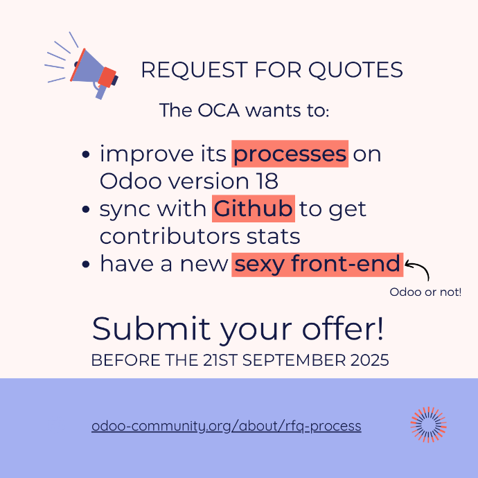RFQ process is explained here: https://odoo-community.org/about/rfq-process#scrollTop=0