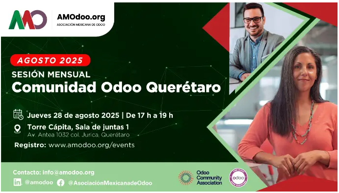 Registro: https://amodoo.org/event/meetup-odoo-queretaro-agosto-2025-16/register