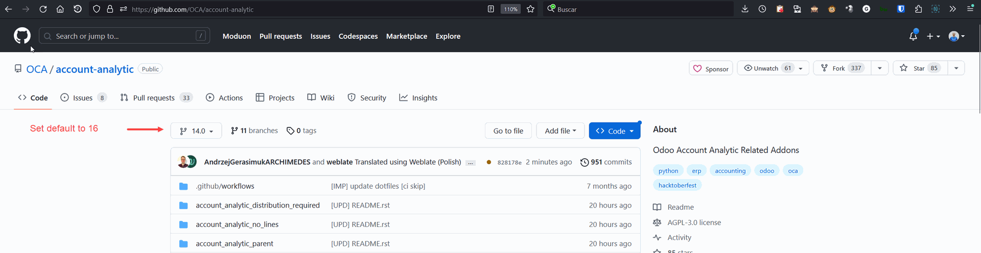 I would like to know how to ask for setting 16.0 the default branch for all repos or how yo ask one by one