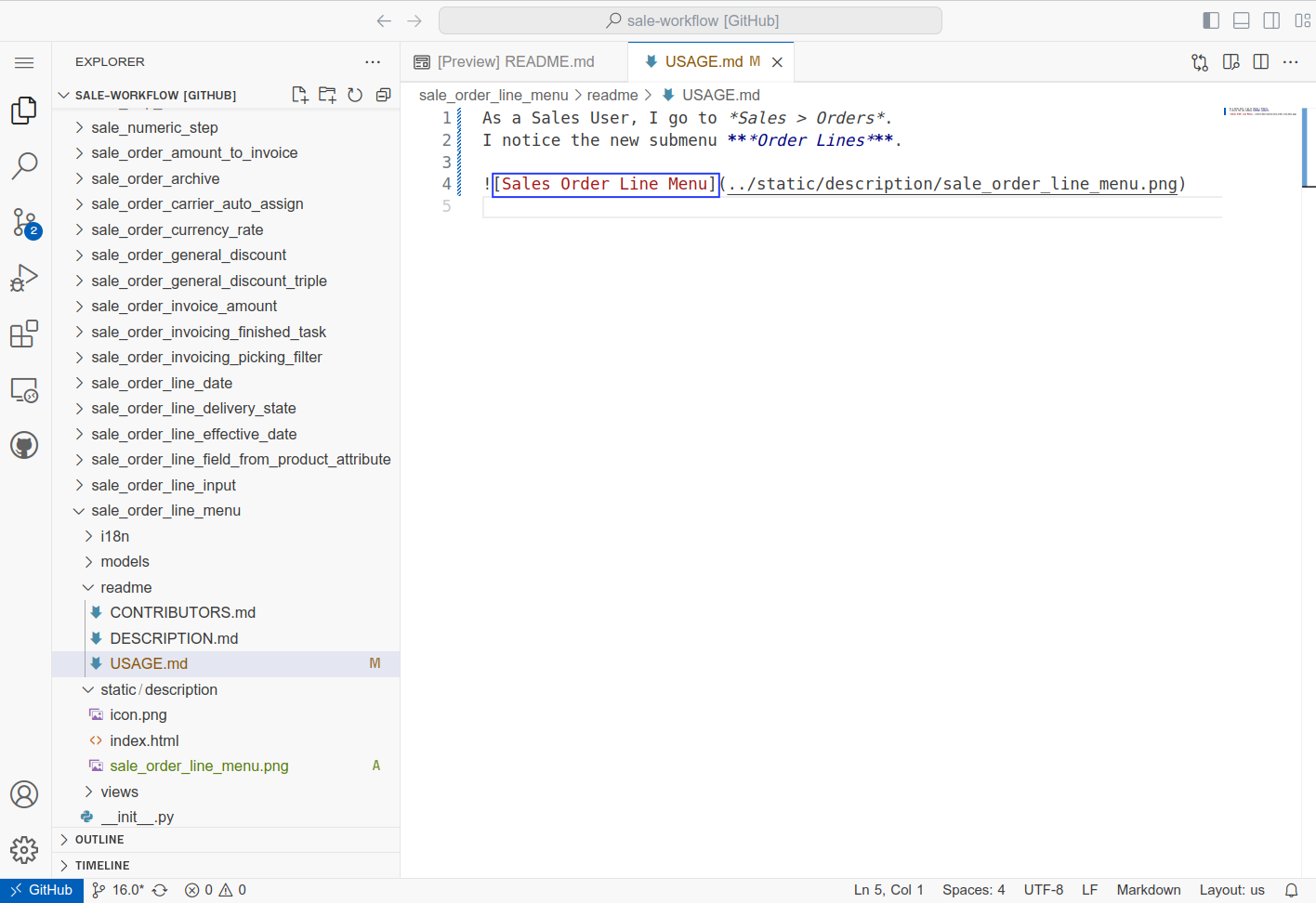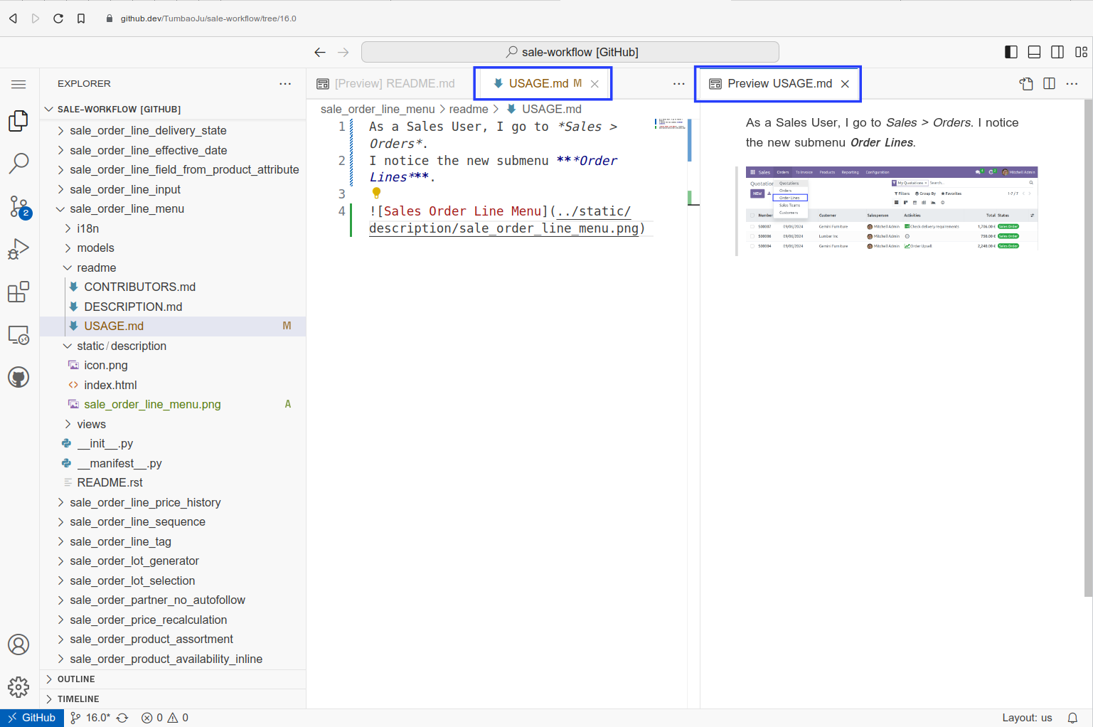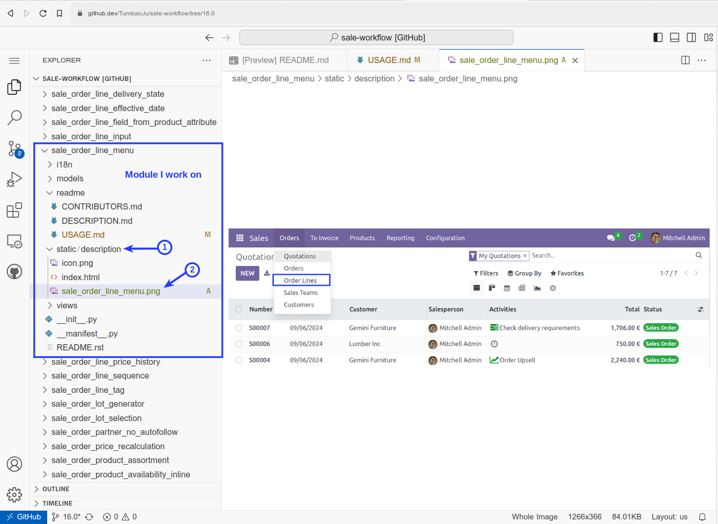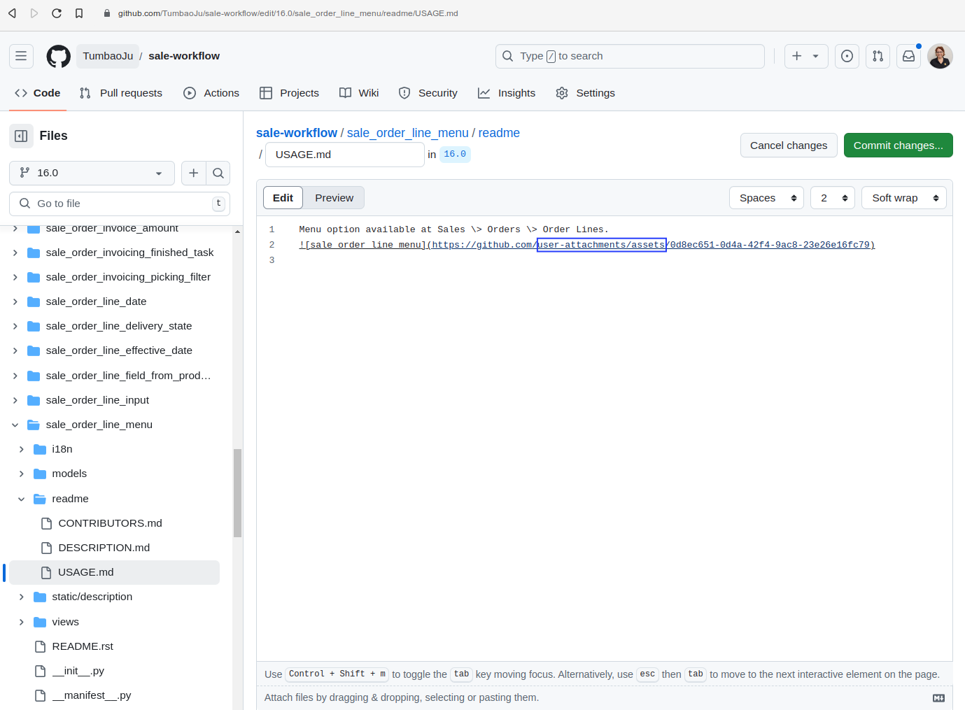 Insert by Drag & Drop the screenshot in the folder “static / description” of the module you are working on.