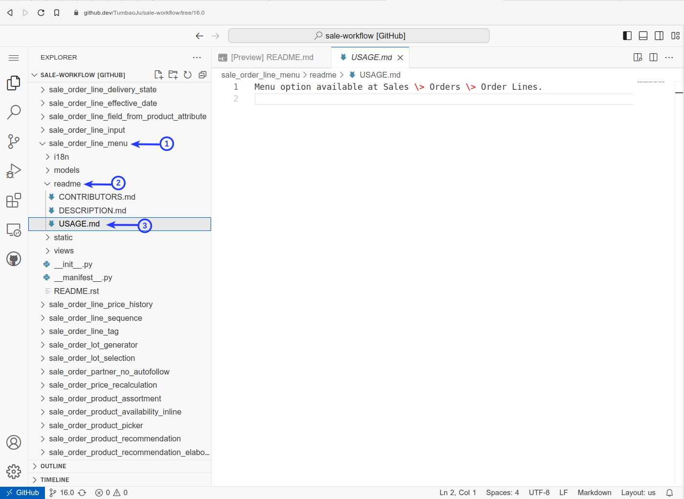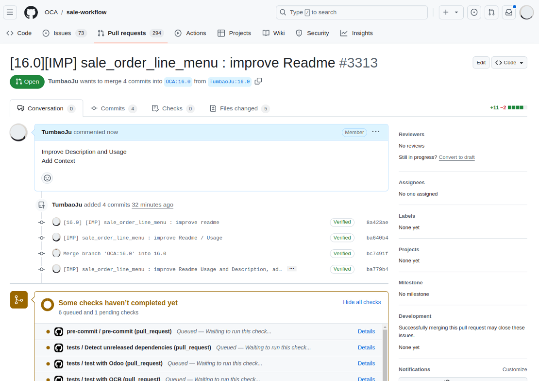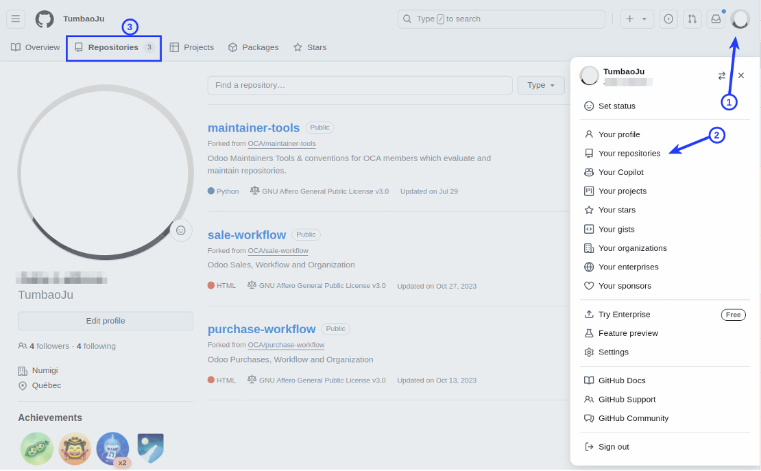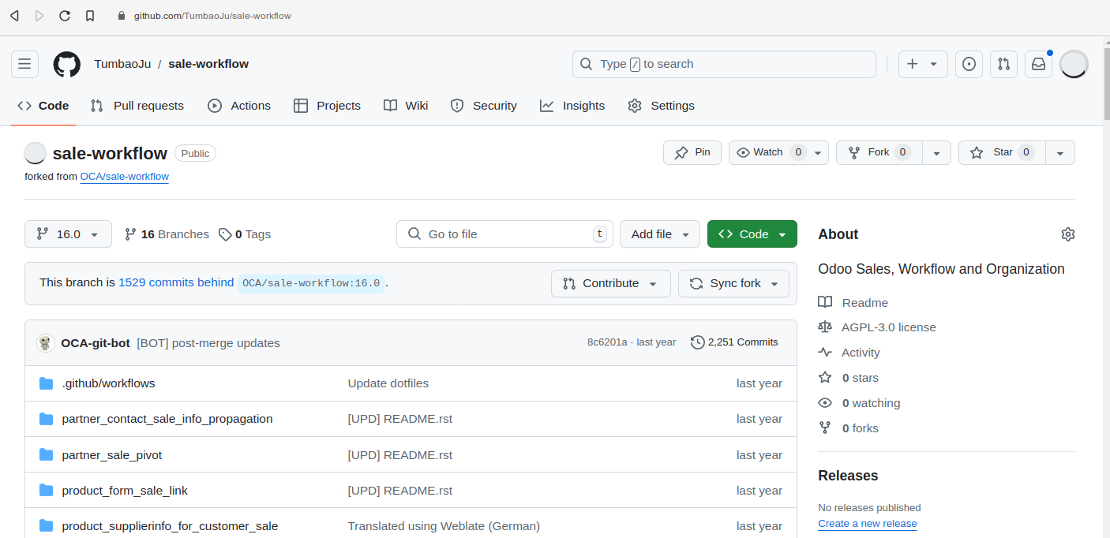 You will need to fork the repository in which the module you want to contribute is located (if it’s not already forked) in your GitHub account.