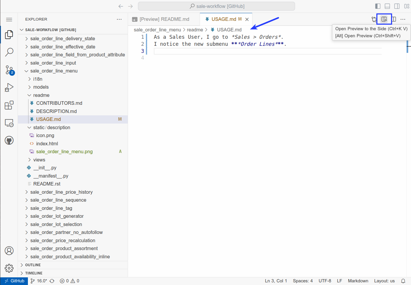 and press the period key . on your keyboard to open the GitHub Web Editor tool. (https://docs.github.com/en/codespaces/the-githubdev-web-based-editor)