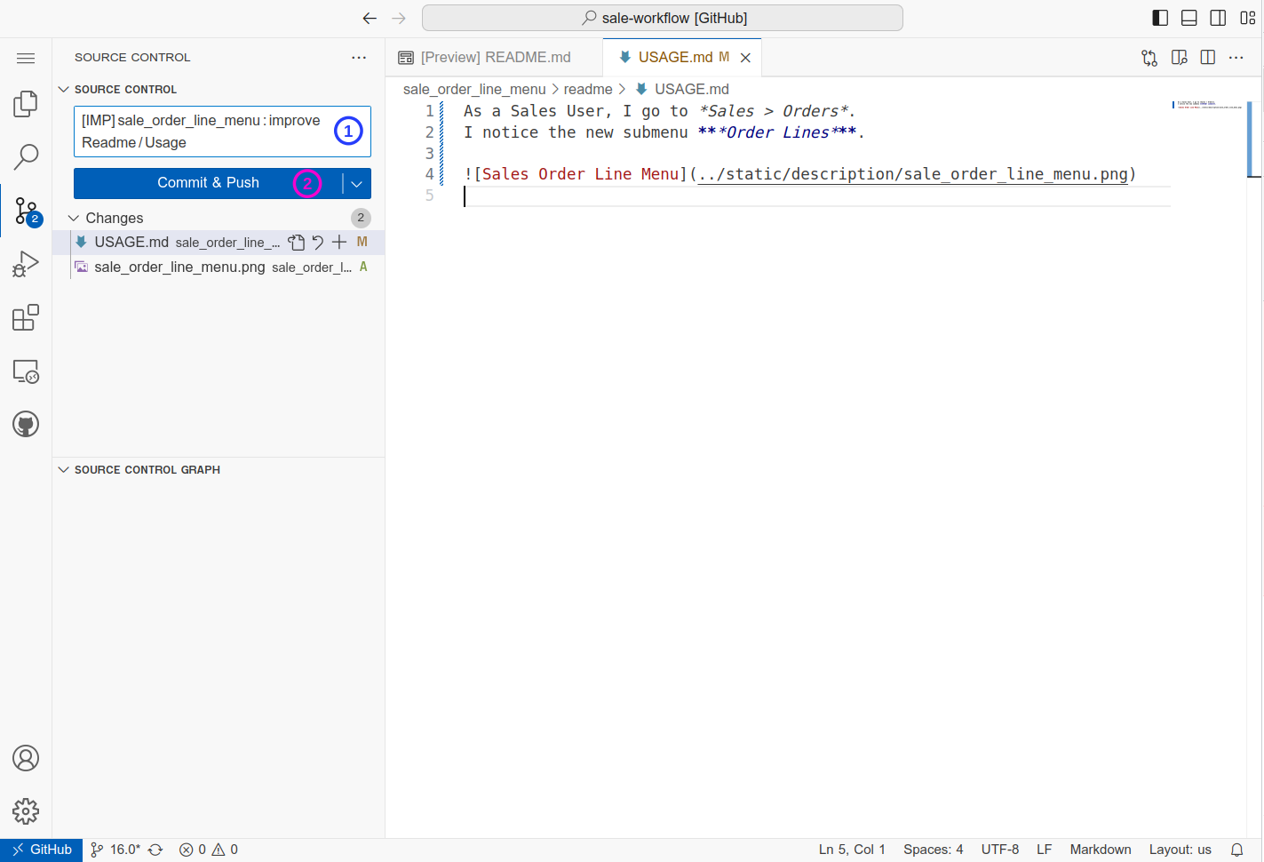 In this example, we want the screenshot image to appear in the USAGE fragment of the Readme.