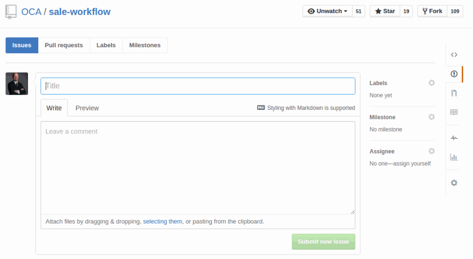 On the selected GitHub repository, create a new issue by providing: